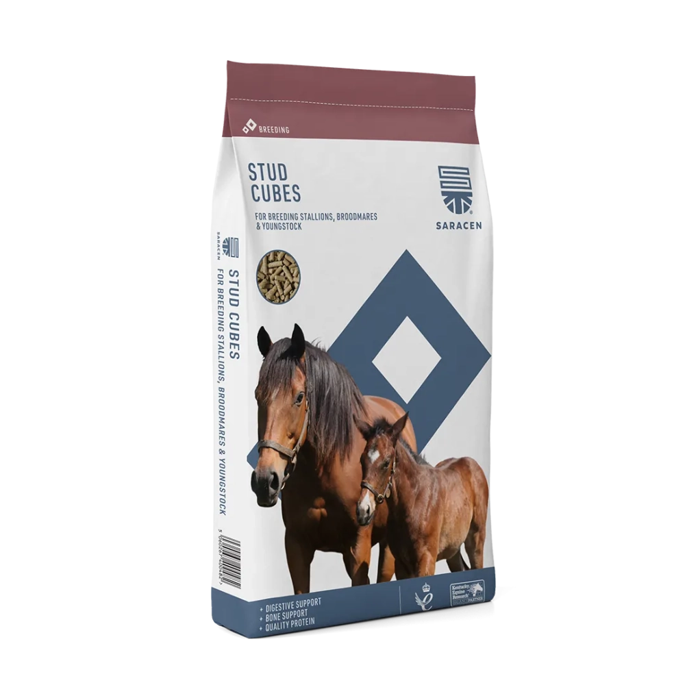 Både Saracen Stud Mix og Saracen Stud Cubes er topkvalitetsprodukter, der er særdeles velegnede til brug i større avlsstalde. Det er nøje sammensat fuldfoder med alle vigtige vitaminer og mineraler og er en god, nærende, alsidig og økonomisk ernæring. Et fiberrigt foder, der bidrager til et optimalt mave/tarmsystem.