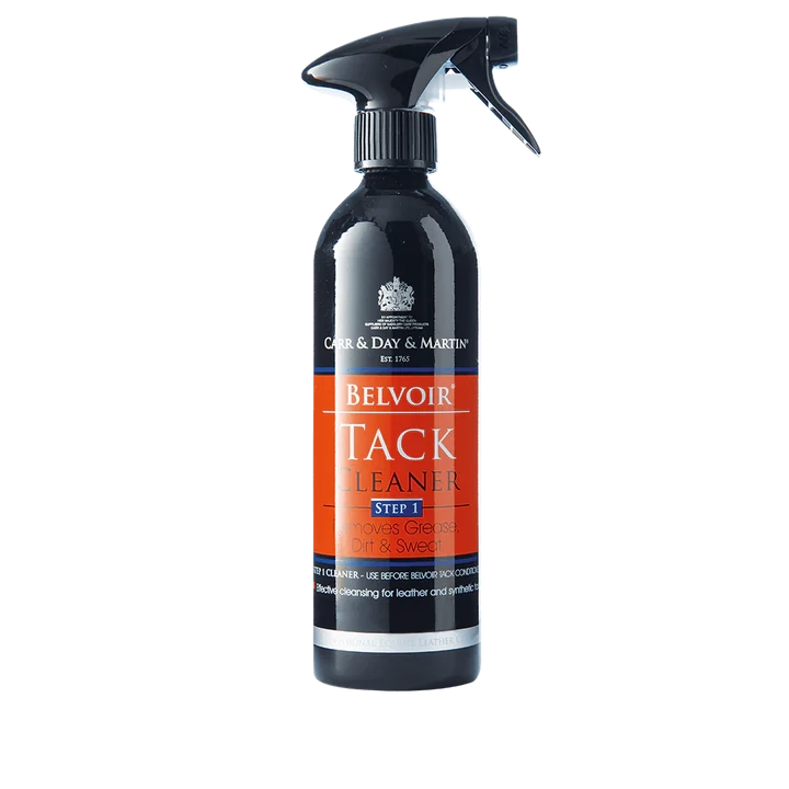 Fedt, snavs og sved fjernes let fra læderet, og produktet efterlader en perfekt overflade til efterfølgende behandling med plejende sæbe eller olie. Flasken har spray der gør det nemt og effektivt at rense sadeltøjet. Belvoir Tack Cleaner fjerner indgroet fedt fra læderet og forebygger udvikling af skimmel og mug. Produktet er pH neutral og vil ikke rådne læderets syninger eller udtørre læderet. Instruktion: Spray direkte på læderet og tør af med fugtig klud. I tilfælde af indgroet snavs skal produktet virke i ca. 5 minutter inden aftørring. Husk at smide kluden ud, hvis læderet du behandler har skimmel el. mug.