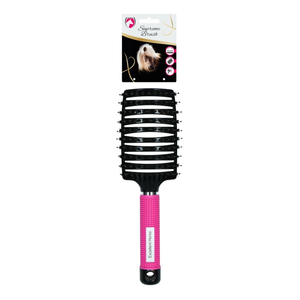 Kombinationen af svinebørster og fleksible pigge med bløde spidser sikrer, at børsten kan trækkes gennem hårene uden modstand – og uden at trække hår ud.