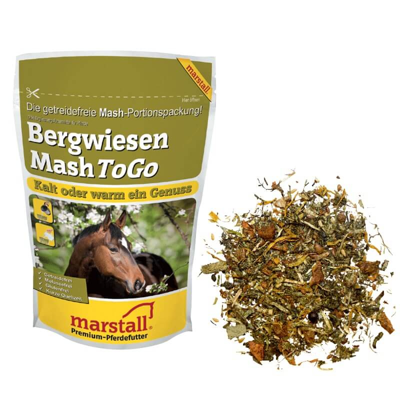 Bergwiesen-Mash er et tilskudsfoder til regulering af appetit, væske og fordøjelse. Blanding: 1 del tør Mash til 1,5 del vand, trækker i 15 min og omrøres grundigt før fodring: