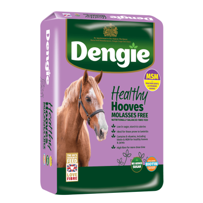 Dengie Healthy Hooves Melassefri er et komplet afbalanceret fiberfoder tilsat vitaminer og mineraler, udviklet til heste og ponyer med et sensitivt stofskifte. Produktet er tilsat ekstra biotin for at støtte hovene, der ofte kan være udsat hos sådanne.