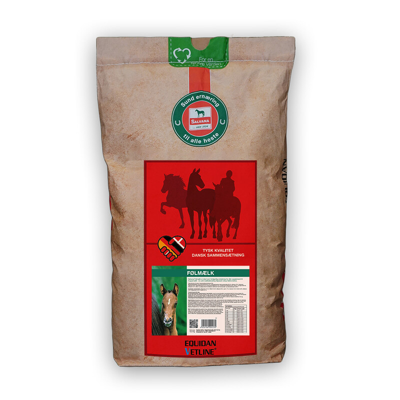 Salvana Følmælk er en ideel mælkeerstatning, som fuldgyldig erstatning for hoppemælk når uheldet er ude eller som supplement når hoppen malker for svagt. Salvana Følmælk indeholder værdifulde og letfordøjelige ingredienser som er i høj lighed med hoppemælken med hensyn til protein- og fedtindhold, alle vegetabilske fedtstoffer. Produktet indeholder desuden et højt indhold af vitaminer og mineraler, som sikre en optimal ernæring af føllet. Ydermere er der druesukker i der hurtigt giver energi. Salvana Følmælk er meget velsmagende og letopløselig. En unik mælkeblanding tilpasset netop føllets behov.