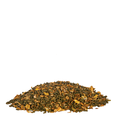 Bygflager, valset havre, nøgen havre, sojaskaller, melasse, majsflager, højprotein sojamel, solsikkeskrå, ærteflager, græspiller, rapsolie, foderkridt, salt, vitaminer og mineraler, dicalciumfosfat, C vitamin, levende gærkultur.