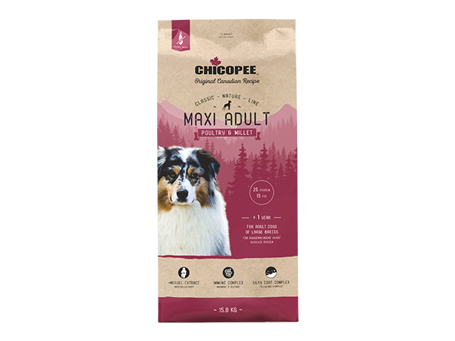 Dette maxi fuldfoder anbefales til voksne hunde fra 1-årsalderen.
