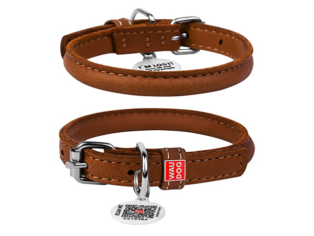 Waudog Soft rundsyet læder halsbånd, brun