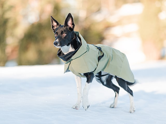 Frakken har en tyk foring af uld-mix, og den har en varmereflekterende membran (FIR – Far Infrared). Det giver super god varme til de hunde, der har dette behov.