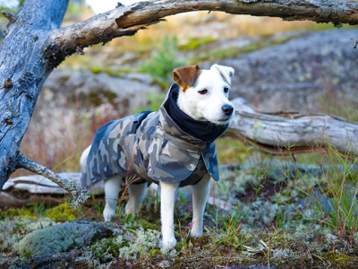 • Den lange krave er vandtæt, og ved god tilpasning til hunden, holder du både vand og kulde ude