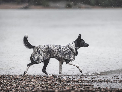 Den beskytter mod både vand og kulde, og hvor det også vægtes højt, at hunden er synlig på gåturen. Samtidig har dragten også et både funktionelt og smart design.