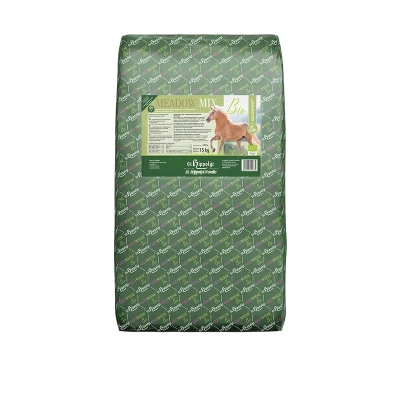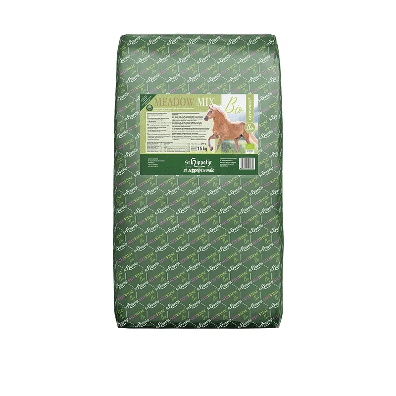 GlyxWiese BIO Meadow Mix kombinere de bedste egenskaber fra økologisk enghø, grønhavre, lucerne, og esparsette. Det økologiske enghø er særligt, da det indeholder en bred diversitet af økologisk dyrket græsser og urter. Sammen med grønhavre, lucerne og esparsette, giver det en let fordøjelige fiberblanding, som har en positiv effekt på hestens tarmmikrobiom. Derudover er Glyx Wiese BIO Meadow Mix rig på vitalstoffer som protein og mineraler. Meadow Mix er et snittet produkt, der med sin struktur kan give mere volumen til hestens krybbefoder og dermed en øget tyggetid og spytproduktion.