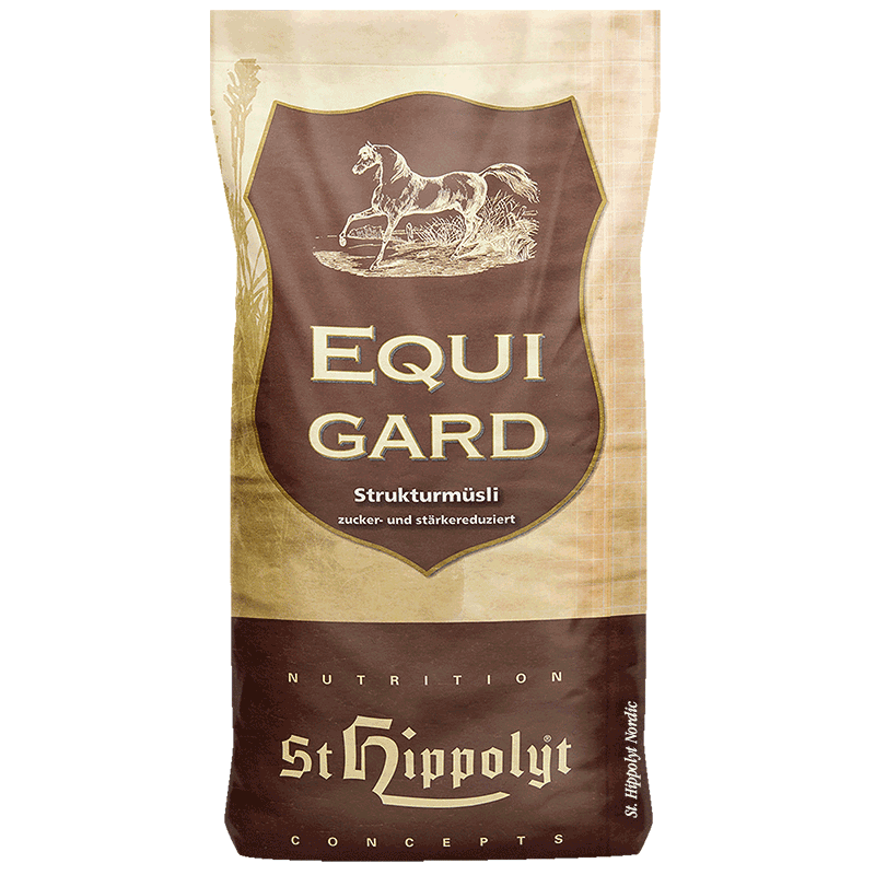 EquiGard® er derfor særdeles velegnet som energifattig ernæring til heste i farezonen eller heste, som allerede er ramt af stofskifteudfordringer. Hos højtydende heste og magre heste med stofskifteudfordringer bør det højere energibehov fortrinsvis dækkes med naturlige olier, olieholdige frø og fermenterbare fibre. Derfor anbefales en kombination med Struktur-E® og HippoLinol®/Leinöl.