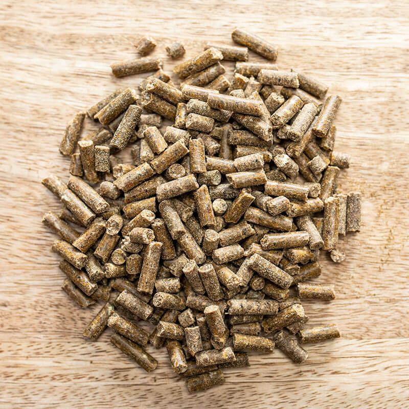 NB: Dette tilskudsfoder indeholder et højere indhold af vitaminer og sporstoffer end et normalt fuldfoder og må derfor kun udgøre 3,0 % af hestens daglige foder (inkl. hø). Overhold venligst fodringsanvisningen.