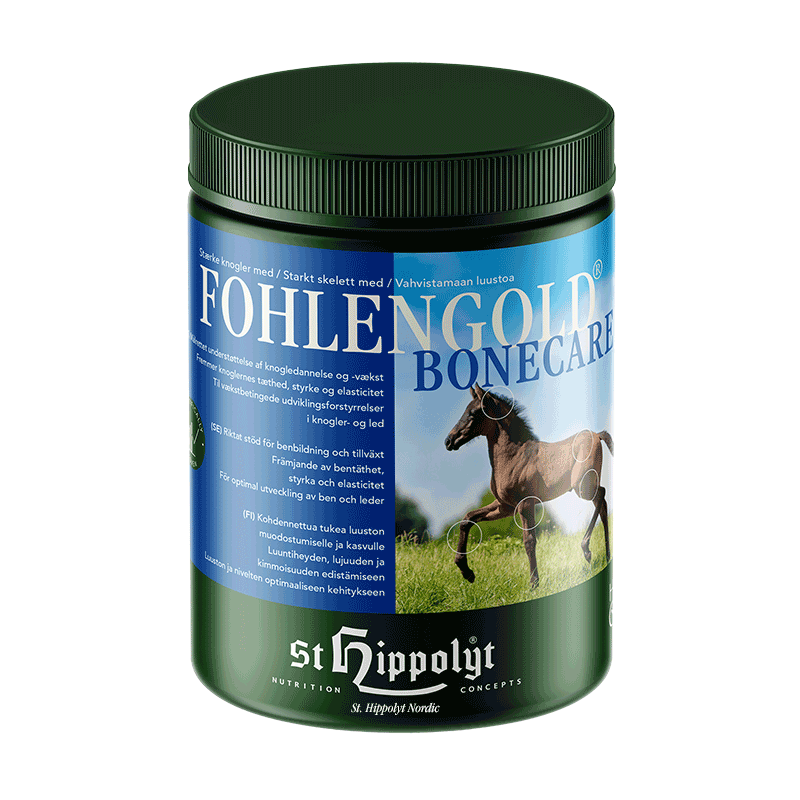 Føl og heste har under væksten og under skelettets udvikling særligt høje krav til deres ernæring. Ved hjælp af en optimalt afstemt og behovsrettet tildeling af vigtige næringsstoffer og byggesten til det voksende føl understøtter og fremmer Fohlengold® BoneCare målrettet en stabil og kontrolleret knoglevækst.