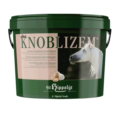 Med Knoblizem® har du mulighed for at tilføre din hest et afbalanceret tilskud med blandt andet hvidløg, hørfrø, hvedekim, urter som rosmarin, pebermynte og koriander og naturlige B-vitaminer. Tilsammen bidrager det til en modstandsdygtig hud og en ændret kropsduft – fra især hvidløget.