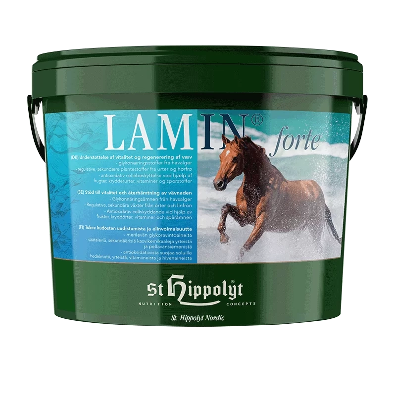 Lamin® forte er næringsbyggesten målrettet ernæringsbetinget tendens til problemer i led, ryg, hals, næse, hove, fordøjelseskanal og kønsorganer samt ved svigtende vitalitet.
