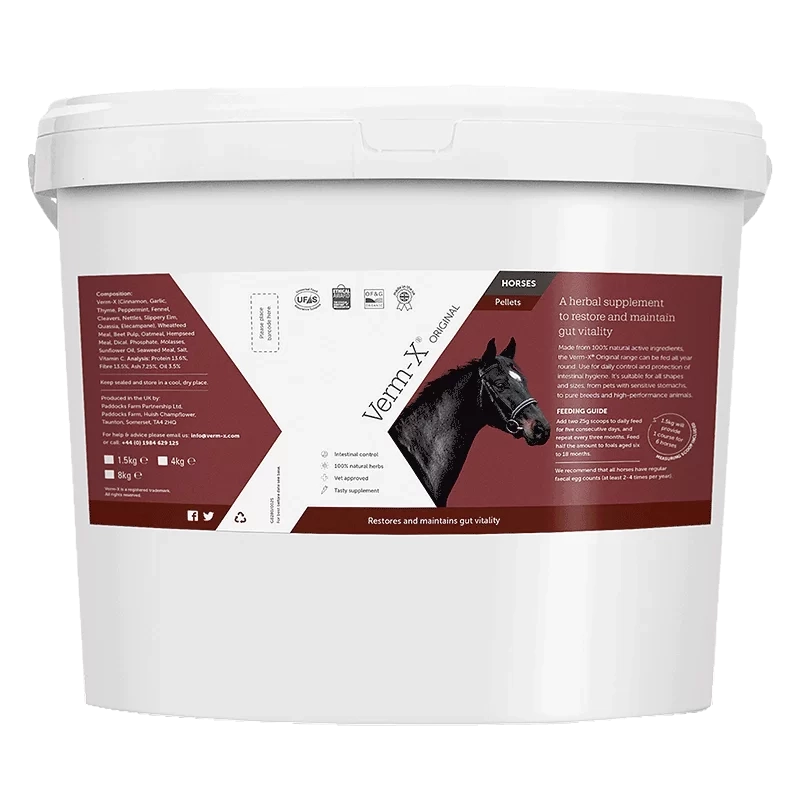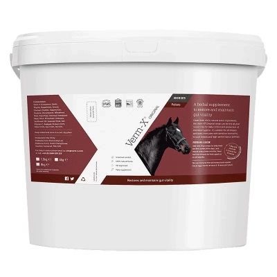 Verm-X (kanel, hvidløg, timian, pebermynte, fennikel, burresnerre, brændenælder, glat elm, quassia, lægealant), hvedeklid, sukkerroefibre, havremel, hampfrømel, dicalcium fosfat, melasse, solsikkekerneolie, havalgemel, salt