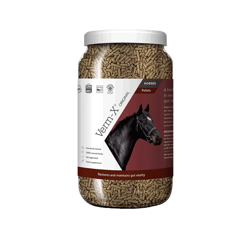 50 g pr. hest dagligt i 5 sammenhængende dage sammen med foderet – gentages hver 3. måned.