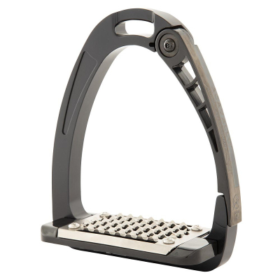 Stigbøjlen har en hængslet sikkerhedsmekanisme med et lille fodstop. Rytterens vægt sikrer, at låsen åbner i tilfælde af et fald, og forhindrer foden i at blive fanget i stigbøjlen.