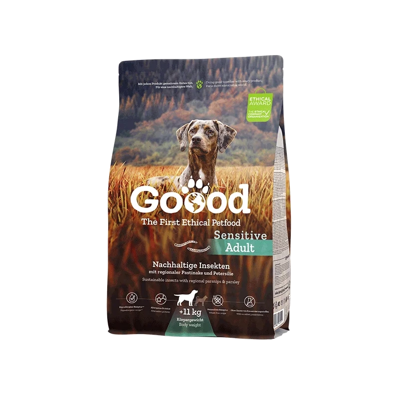 Vores insekter udgør en proteinkilde af særlig høj kvalitet. Det skånsomme hundefoder, baseret på insektprotein, giver letfordøjelige og værdifulde næringsstoffer, og er derfor ideel til hunde med ernæringsfølsomhed. Samtidig bruges der kun et minimum af ressourcer på at opdrætte insekterne. Her har vi et velsmagende og komplet hundefoder.