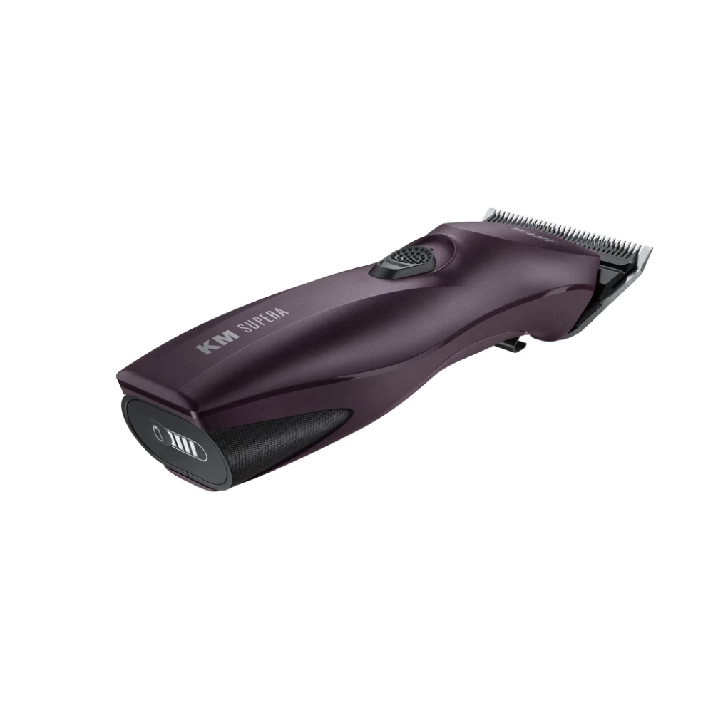 KM Supera er ideel til fuld klipning af heste med let pels samt til detaljeret og delvis klipning af kraftig pels. Klippemaskinen er udstyret med et holdbart, præcisionsslebent 1,5 mm (#10) skær, som sikrer en professionel finish takket være materialer af høj kvalitet. Det lave lydniveau på kun 68 dB gør desuden maskinen velegnet til nervøse heste. Med sin lave vægt (380 g) og ergonomiske design er den perfekt til krævende klipninger. Du kan vælge mellem to hastigheder (3000 og 3700 omdr./min.).