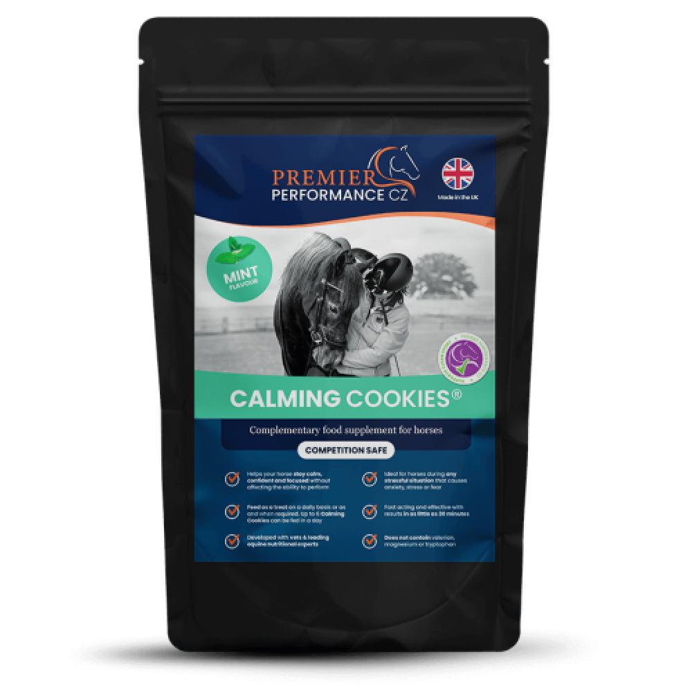 Calming Cookies fra Premier Performance er udviklet med dyrlæger og ernæringseksperter i England, der gennem videnskab har sammensat produkter med naturlige ingredienser i en unik sammensætning for optimal virkning. De naturlige ingredienser er mixet sammen og produceres i hånden til cookies, som er meget nemme at give til sin hest.