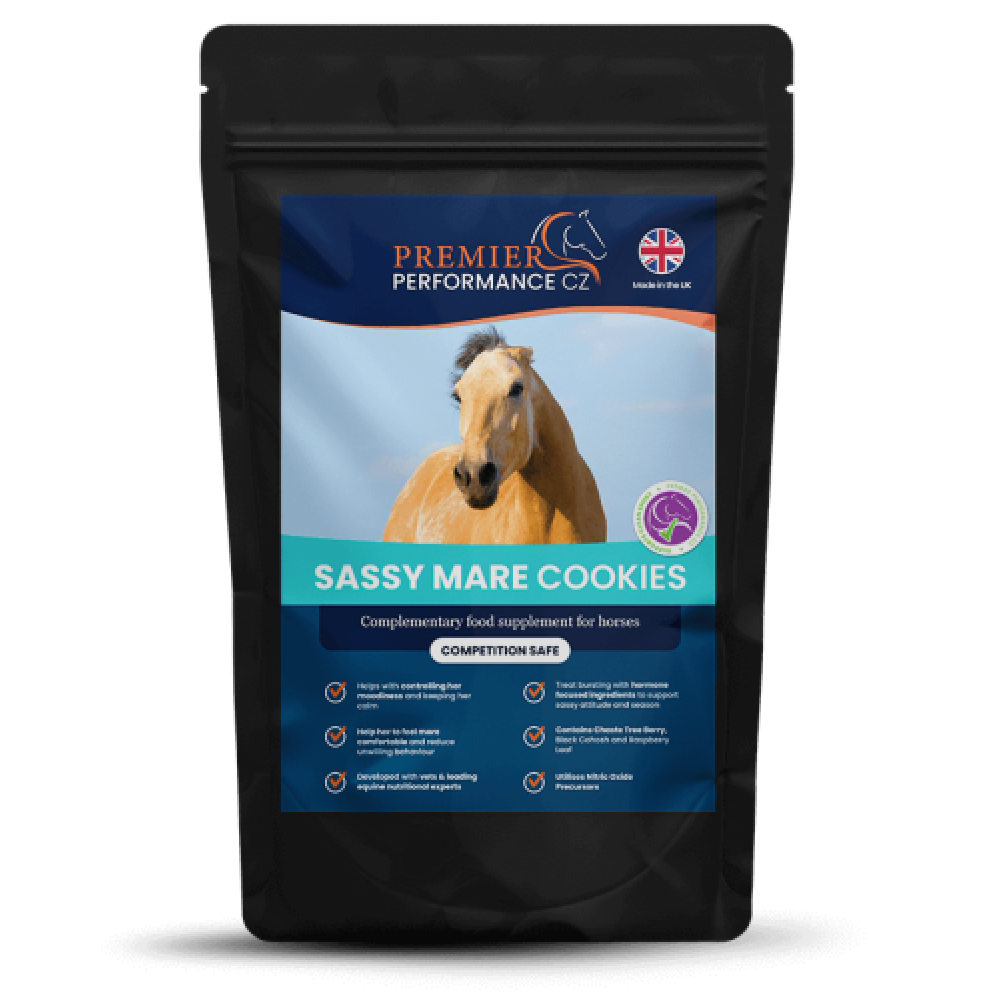 Sassy Mare Cookies er sammensat af hormonfokuserende ingredienser, der støtter din hoppes attitude og hendes brunstperiode. Produktet kan hjælpe din følsomme hoppe og gøre hende mere tilpas under hormonelle cyklusser og reducere uvilligt eller tvær adfærd, der kan gøre hende svær at håndtere og påvirke hendes præstation.