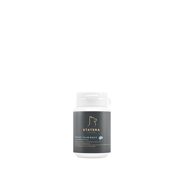 STATERA Stay Calm Daily er en kombination af aminosyren L-tryptofan, B vitaminer og magnesium, hvor L-tryptofan er en essentiel aminosyre, der fungerer som forløber for neurotransmitteren / signalsubstansen serotonin. Ved optagelse af L-tryptofan øges serotoninniveauet i hjernen, og giver derved hunden en beroligende / lugnande effekt med øget positiv fokus uden at påvirke hundens energiniveau.