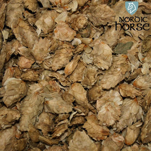 Humle indeholder først og fremmest østrogenlignende stoffer, og kan med fordel tildeles til hvinske hopper, og vallakker der er kastreret sent, og dermed udviser hingsteadfærd, grundet ubalancer i hormonsystemet.