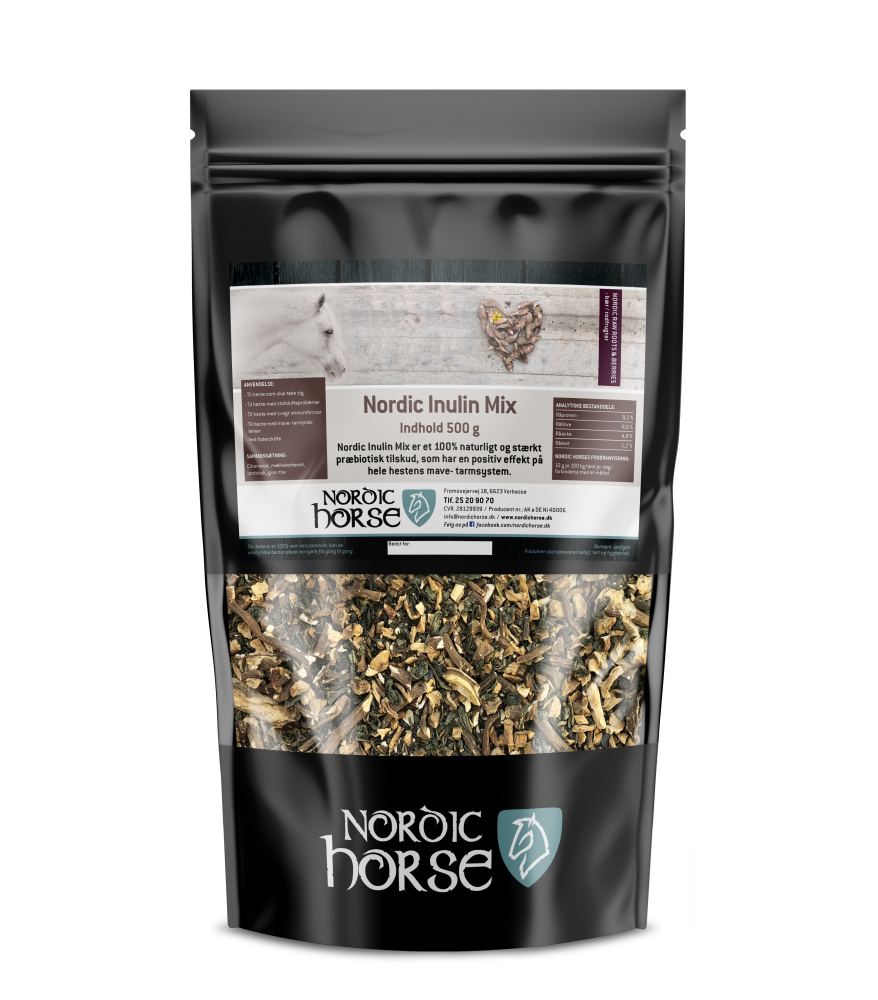 Nordic Inulin Mix er baseret på noget af det sundeste fra naturen, nemlig rødder og grøn the. De udvalgte rødder har et meget højt inulin indhold, og i kombination med grøn the som er meget høj på antioxidanter, har man et koncentreret tilskud, til hesten som skal tabe sig eller hesten som har svagt immunforsvar.