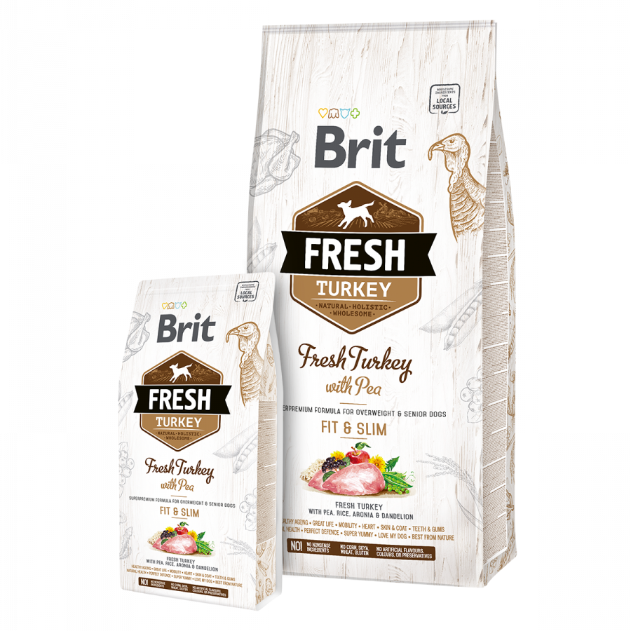 Brit Fresh Adult Fit and Slim Turkey er udviklet særligt til hunde, der nemt tager på og til ældre hunde med et lavere stofskifte og aktivitetsniveau.