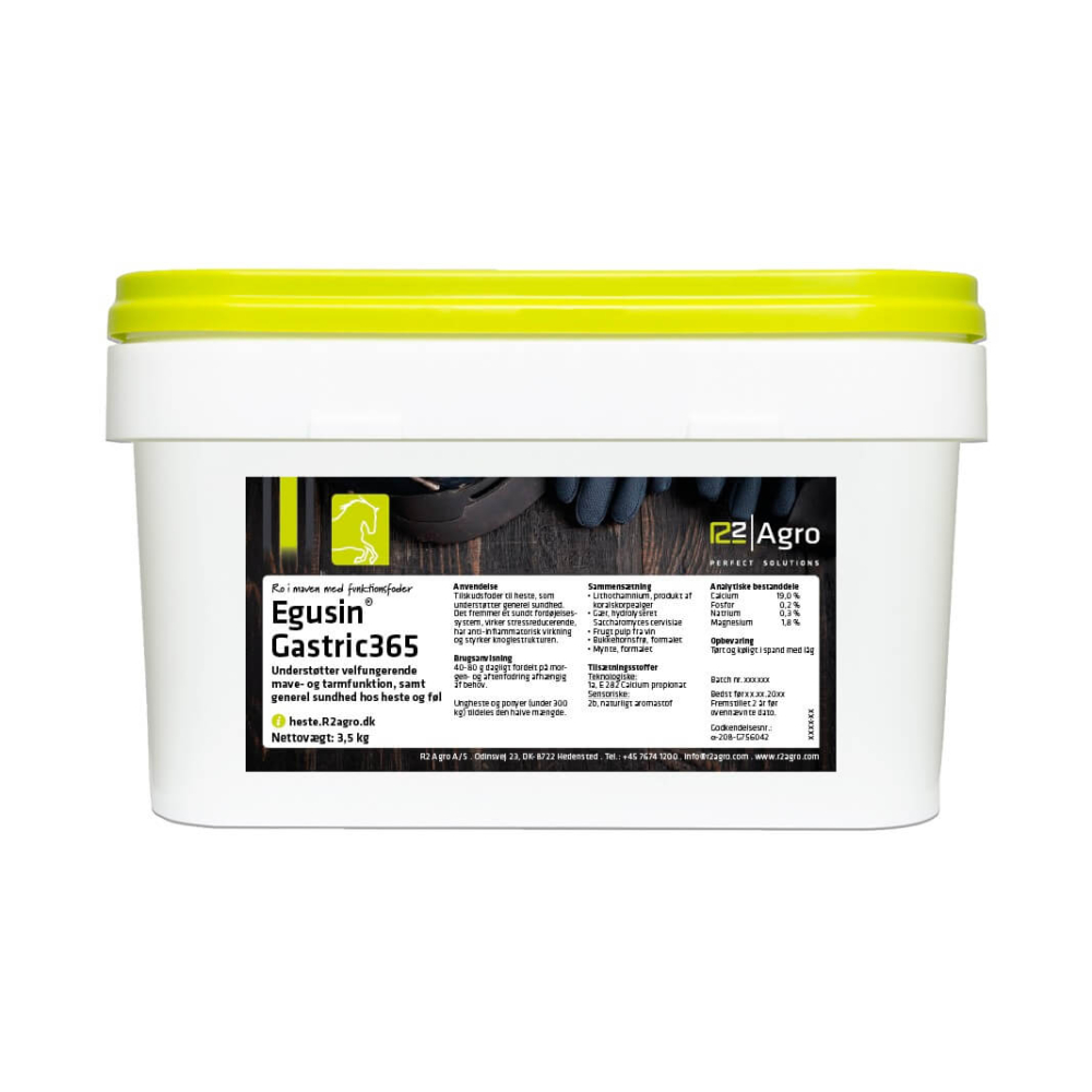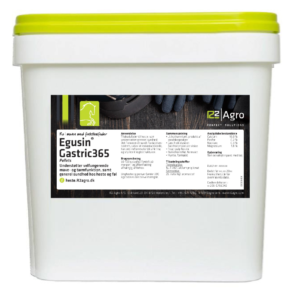 Egusin®Gastric365 kan benyttes dagligt for støtte af fordøjelsen, for at vedligeholde et naturligt forsvar og en sund funktion af mave og tarmkanalen. Egusin® Gastric365 understøtter desuden generel sundhed hos heste.