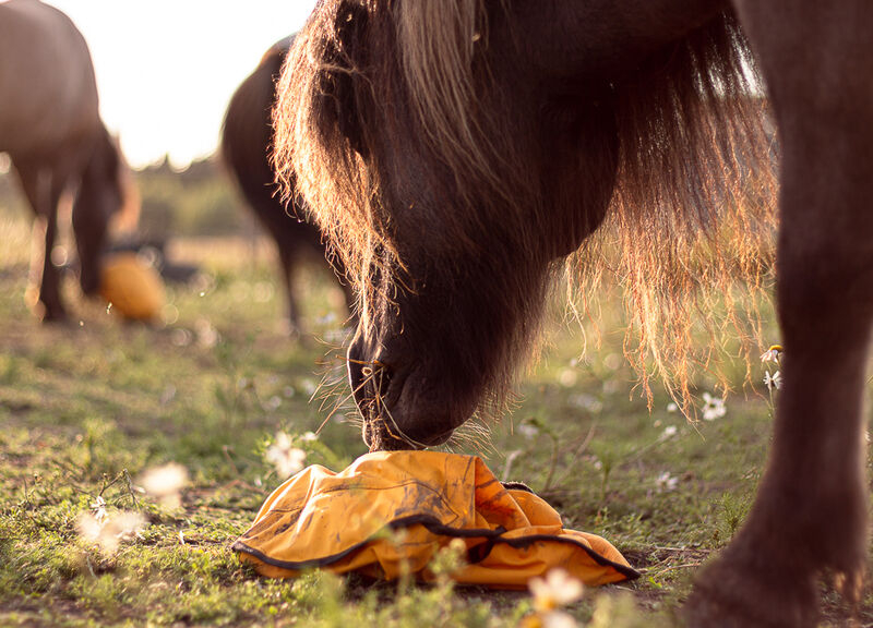 Materialerne i Mini Fluffy er vand- og smudsafvisende. De holder høet rent for strøelse og jord. Nettet er lavet af bilindustriens sikkerhedsseler og er derfor helt unikt og holdbart. Netstørrelsen kan ikke sammenlignes med andre slow feeders på markedet. Det er typisk sværere for hesten at bruge. 4 cm netstørrelse kan bruges med tørt hø eller ensilage. Hvis høet er meget kort eller stråene er tykke, anbefaler vi at bruge Fluffy Feeder med den større netstørrelse.