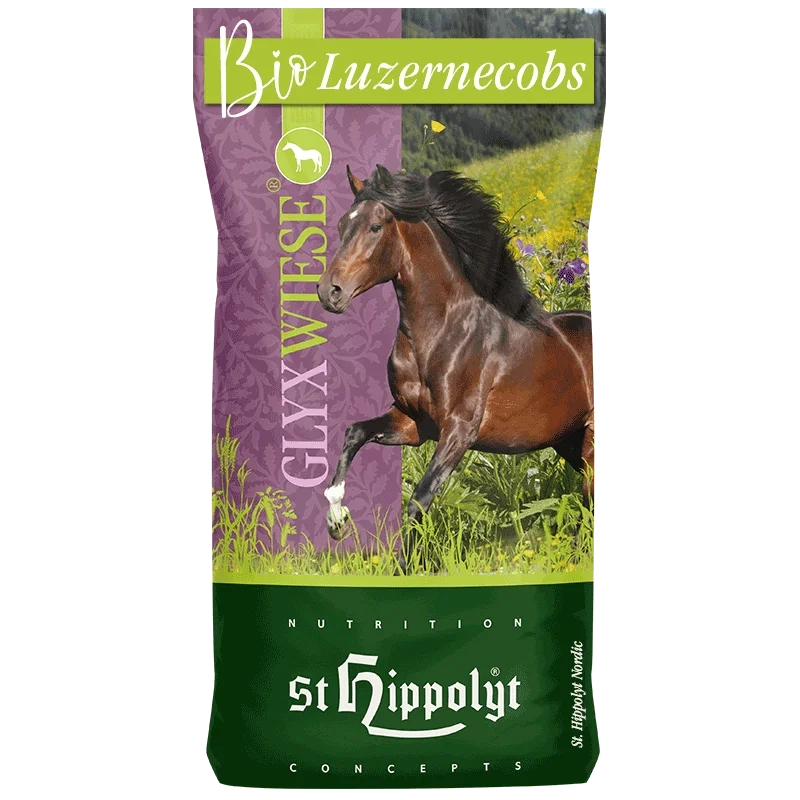 GlyxWiese® BIO Luzernecobs består af 100 % lucerne fra hele planten i en ren økologisk kvalitet. Produktet er velegnet til alle typer heste, men især til sportsheste, da cobsene er en værdifuld proteinkilde.