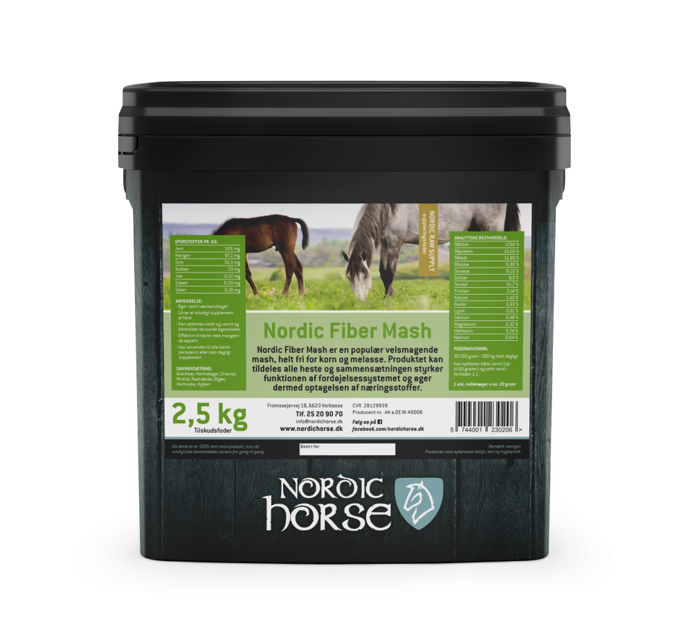 Nordic Fiber Mash er baseret på alpehø med en stor diversitet i græsser og urter, samt roetrævler, ølgær og forskellige sunde fedtkilder. Et komplet fibertilskud hvor hesten desuden suppleres med sunde omega-3 fedtsyrer.