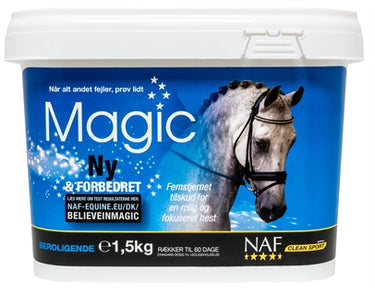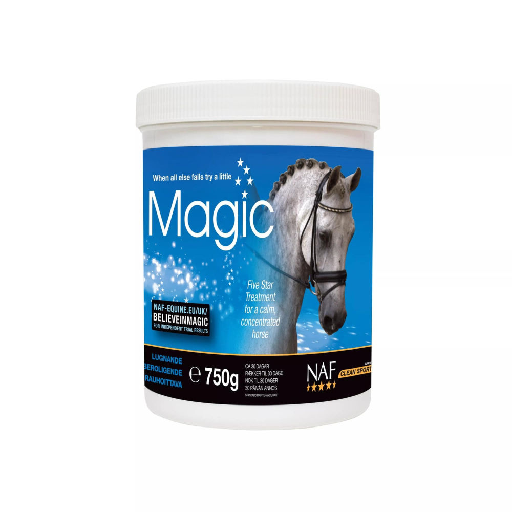 Magnesium er essentielt for hestens velbefindende og regulerer blandt meget andet nervøs anspændthed. Eftersom magnesium også virker på muskelspænding, kan en hest med for lidt magnesium optræde anspændt i sit bevægemønster og udvise nervøsitet, opskræmthed og manglende mod. Et lavt niveau af magnesium kan skyldes mangler i græsset eller simpelthen det enkelte dyrs individuelle evne til at optage magnesium. Magnesiumniveauet kan desuden reduceres ved jævnlig rejseaktivitet og stævner. Magic er dog mere end blot magnesium; det indeholder også en blanding af urter, som traditionelt bruges til at understøtte selvtillid og koncentration. En unik blanding af magnesium og urter i Magic gør hesten i stand til at tackle alt, hvad den bliver bedt om, roligt og modigt.